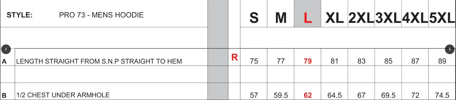 SIZES FOR NAMED CLUB HOODIES - MENS SIZES