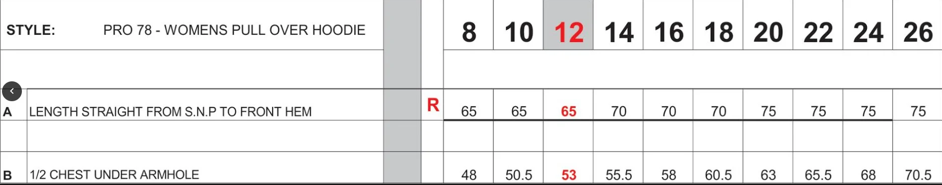 SIZES FOR NAMED CLUB HOODIES - WOMENS SIZES